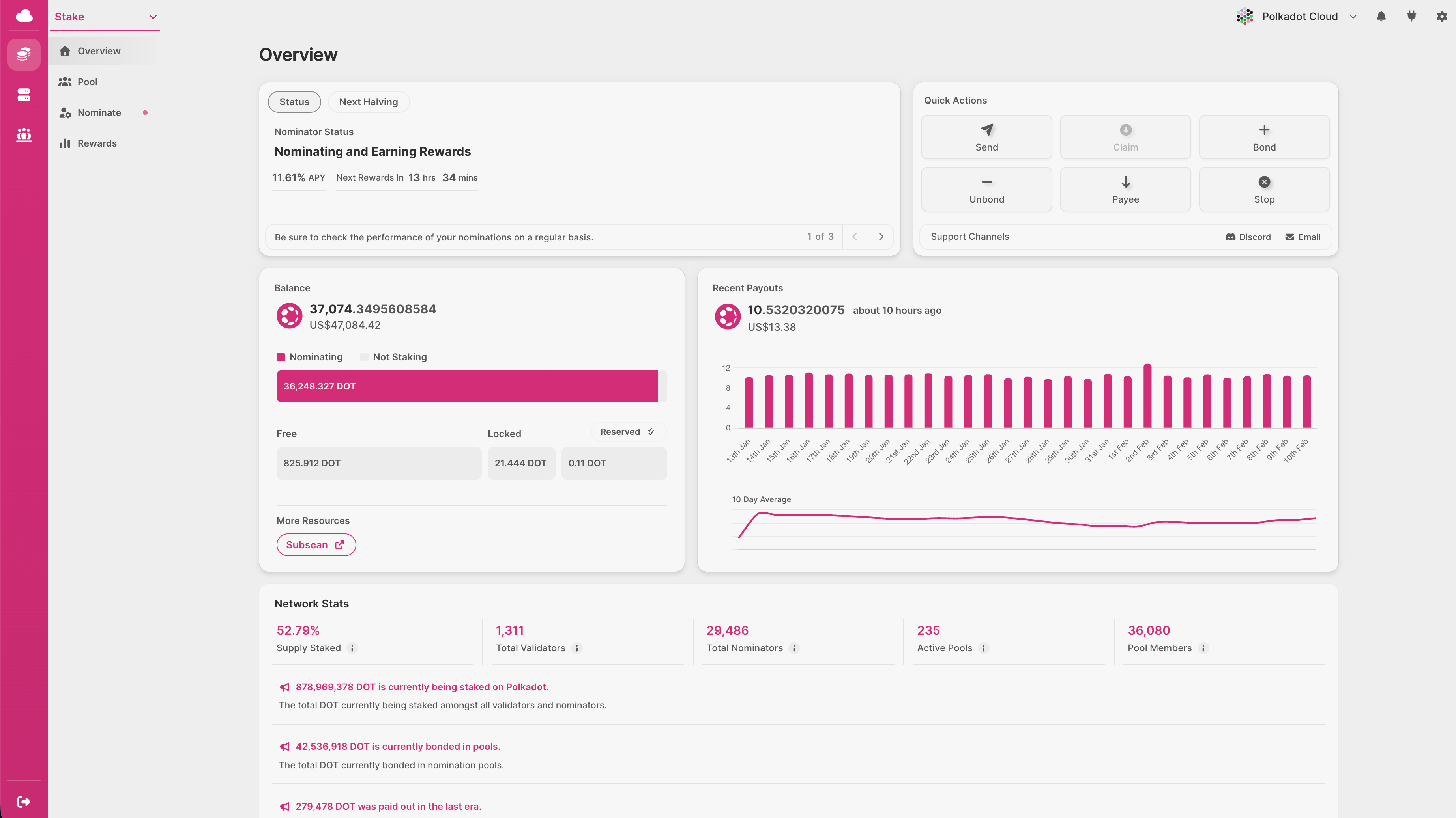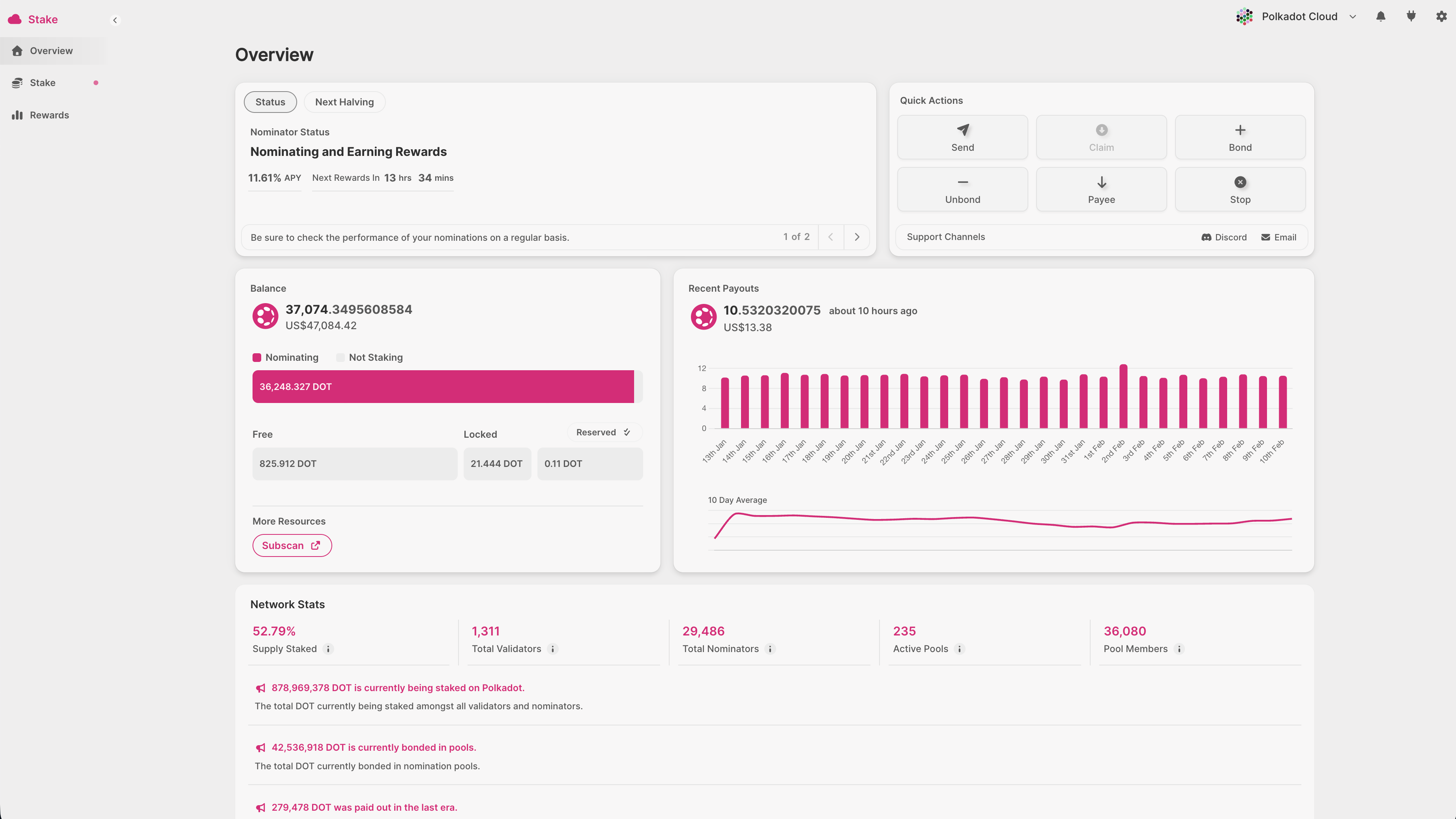 - Solo nomination and pools: Manage your staking operations as a solo nominator or participate in nomination pools.